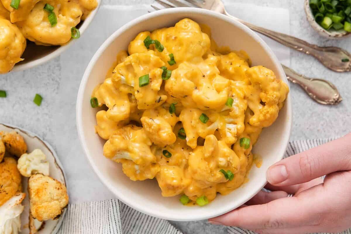 - Mix well so the cauliflower is evenly coated in the cheese sauce. Serve immediately and enjoy!